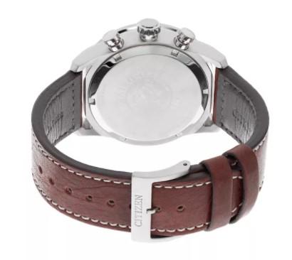 Citizen Eco-Drive Men's Avion Watch. Eco-Drive technology - powered by light. Never needs a battery. Features a 45mm stainless steel case with black dial and mineral crystal, luminous markers and classic date function. Rich brown leather strap with contrast stitching.