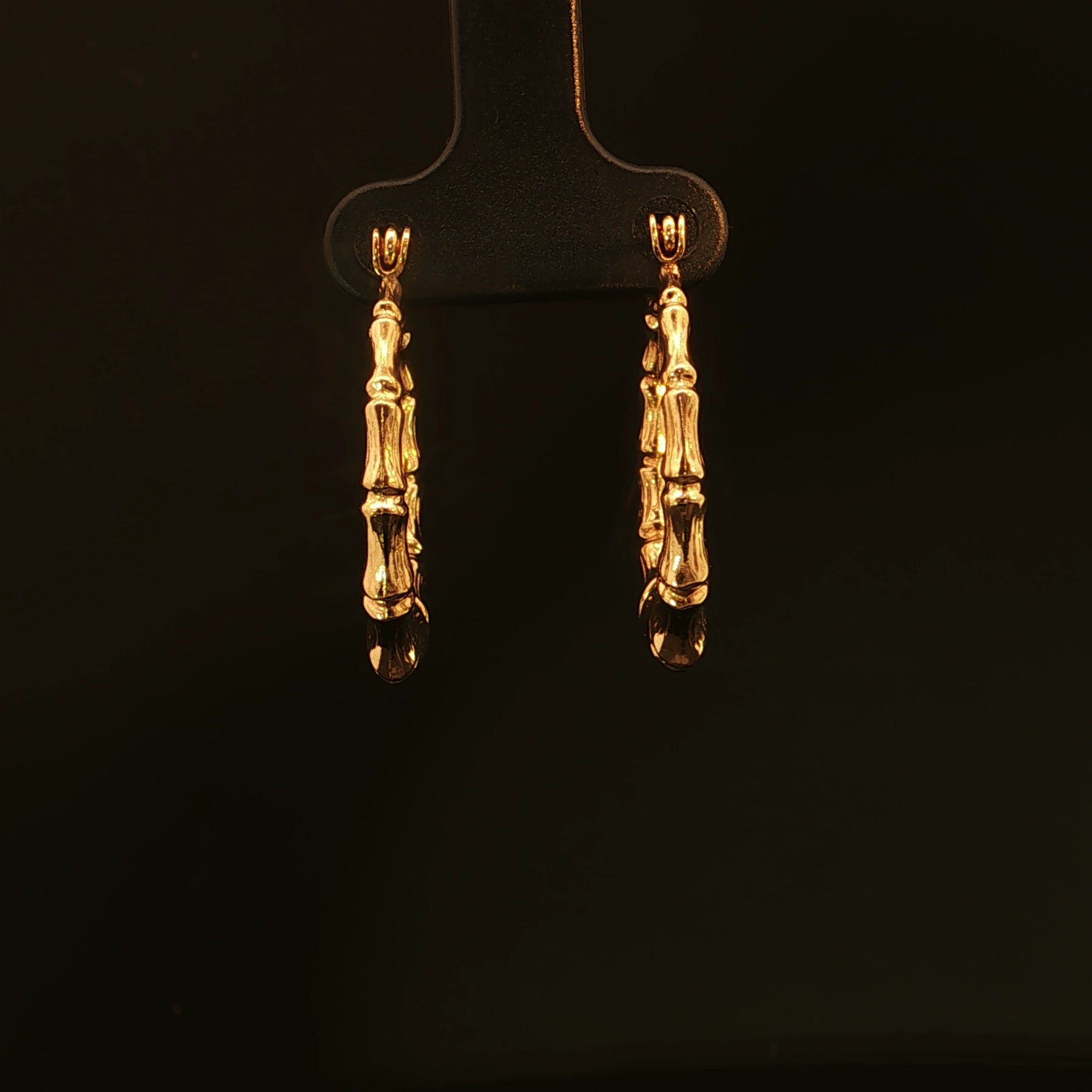 14K Yellow Gold Ribbed Bamboo Style Hoop Earrings. Weighs 1.64 DWT