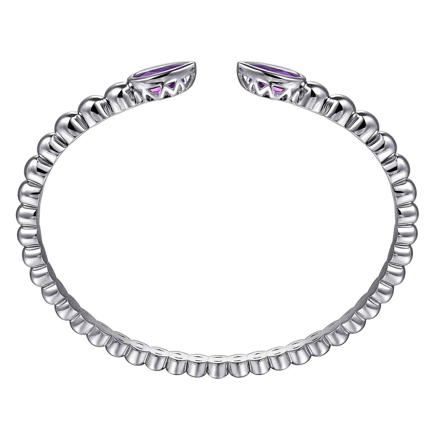Sterling Silver 6.25 Inch Bujukan & Pear Shape Amethyst Split Bangle Bracelet. This sterling silver bangle style bracelet is 6.25 inches and features two pear shaped amethyst bezel set totaling 2.52cttw. Designed by Gabriel & Co.