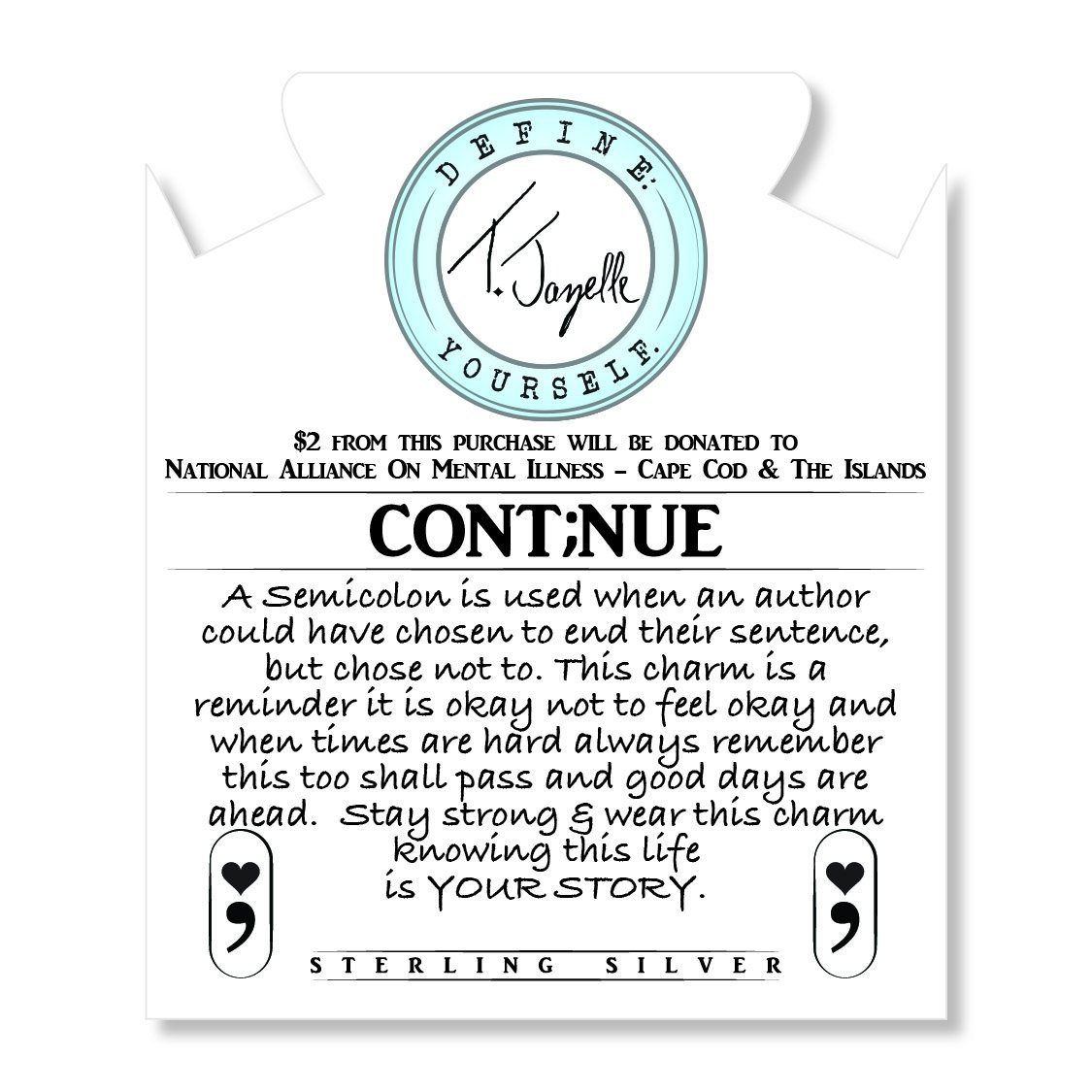Continue Sterling Silver Charm- A Semicolon is used when an author could have chosen to end their sentence, but chose not to... This charm is a reminder that it is okay not to feel okay and when times are hard, always remember this too shall pass and good days are ahead. Stay strong & wear this charm knowing that this life is YOUR STORY.