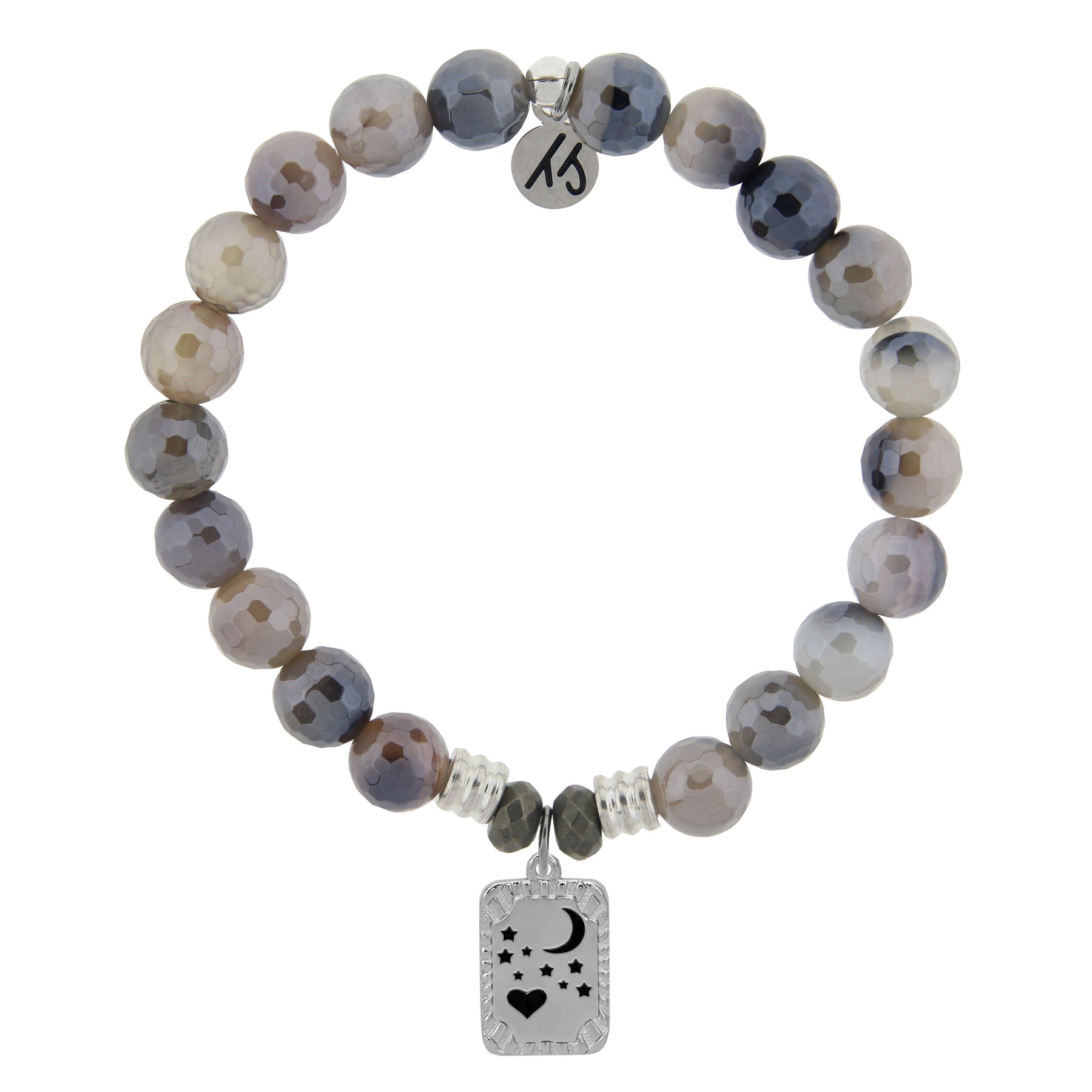 Storm Agate Stone Bracelet with Moon and Back Sterling Silver Charm