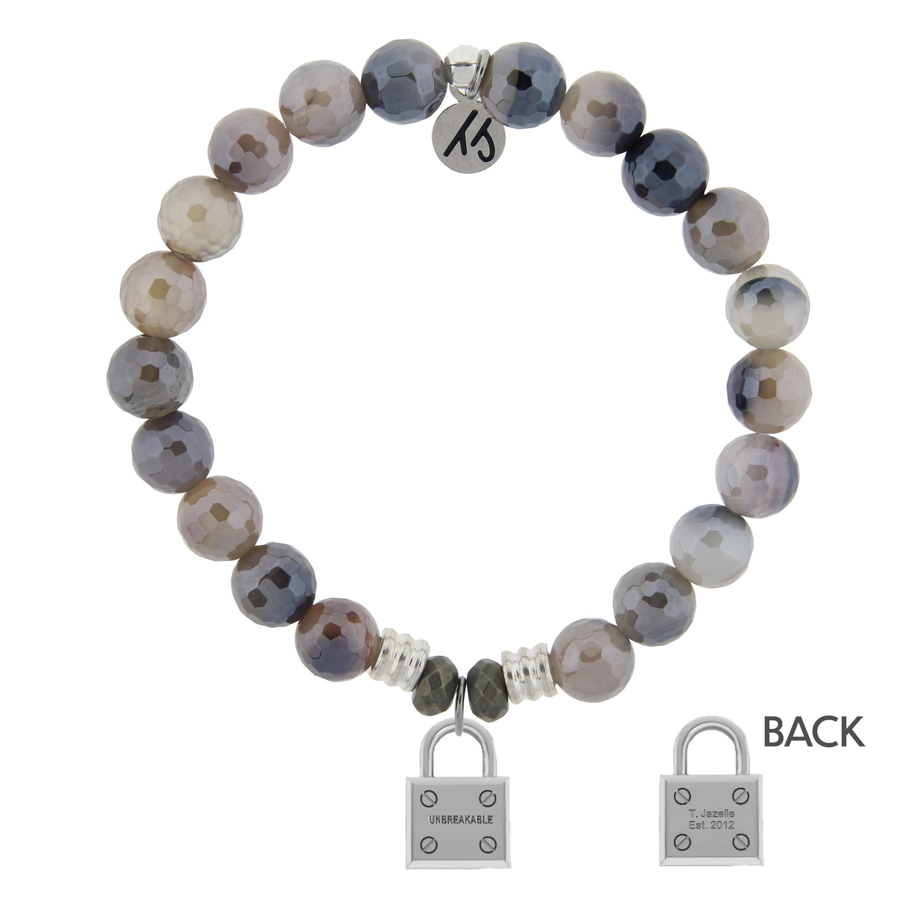 Storm Agate Stone Bracelet with Unbreakable Sterling Silver Charm